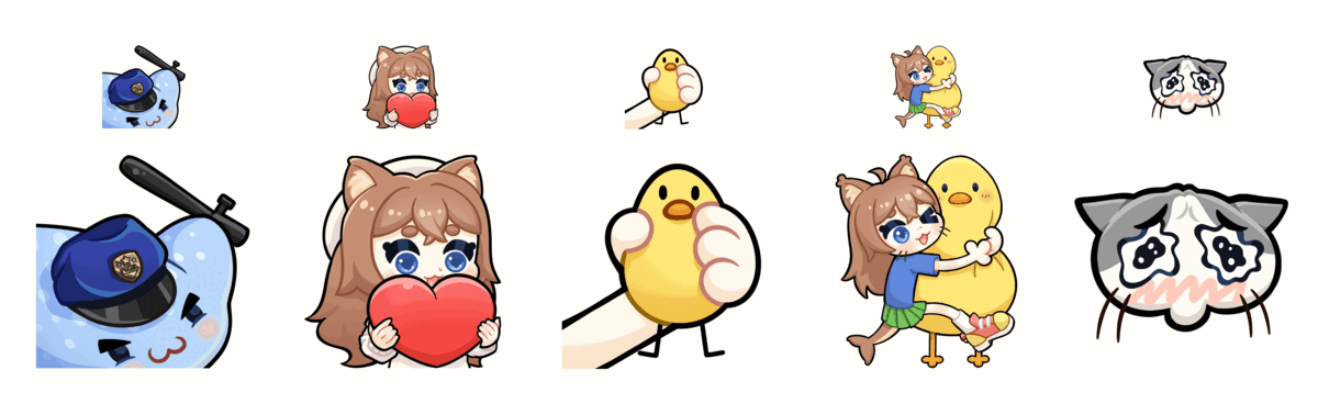 (in the sizes 600x600, 320x320 and 112x112) per emote so that you can easily utilise them on Discord, Twitch or in a video with decent resolution.If you want different dimensions, state so in your commission form.